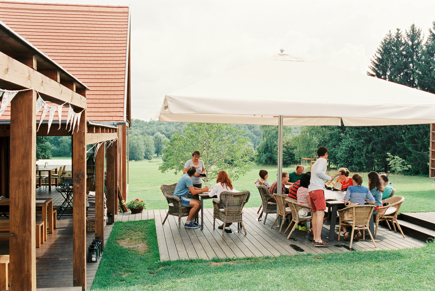 We were on the road in August near the Slovenian-Austrian-Hungarian triple border in the greenest part of Hungary (Őrség region), and pitched upon a few astonishing places. Pajta Bisztró in the center of this region was one of them. We went for a good coffee, but we were just stuck there. Of course, with film cameras.